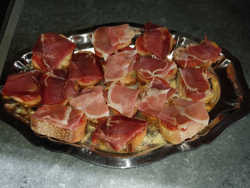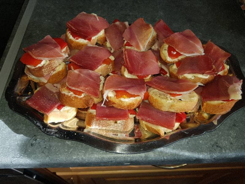 Poivrons grillés marinés huile d’olive en persillade et ces croutons……….. 3,40 €/HT/pers