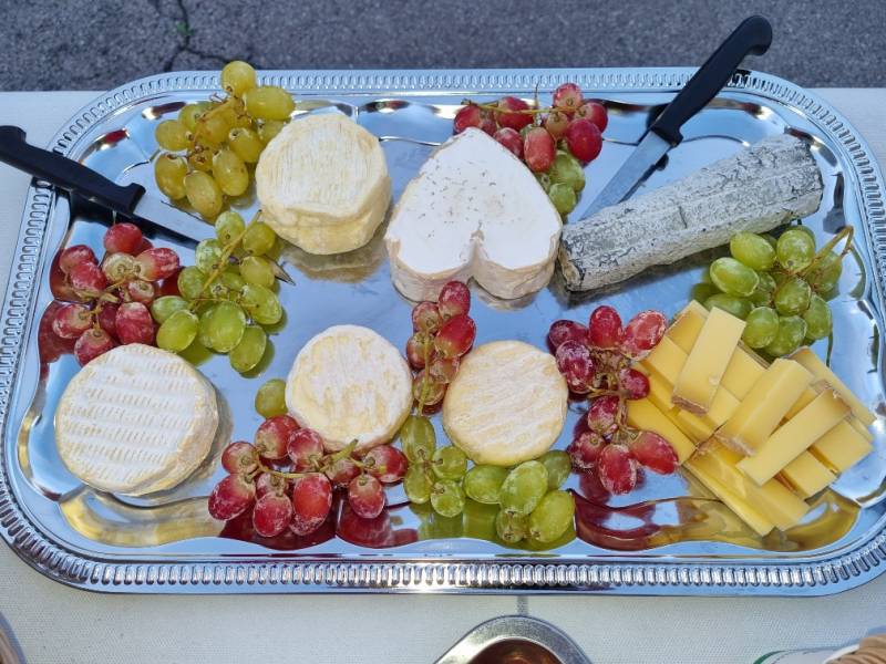 Plateau de fromage d’exception (5 aux choix plus 1 camembert fondu) en complément d’une prestation méchoui ……….. 5,00 €/HT/pers