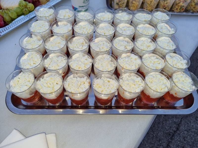 Verrines taboulé orientale, tomate feta, guacamole crevette, pêche thon……….. 1,80 €/HT/pièce
