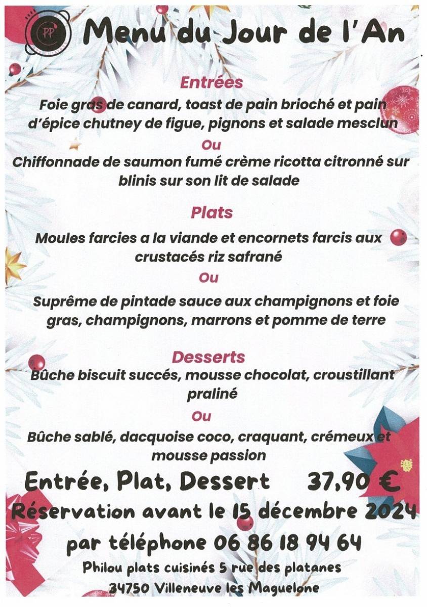 Menu de Noel et jour de l'an 2024